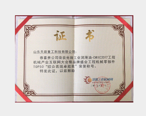CMIIC2017工程機(jī)械零部件TOP50“綜合表現(xiàn)卓越獎(jiǎng)