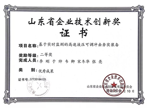 近日,根據(jù)《山東省企業(yè)技術(shù)創(chuàng)新獎審定管理辦法》和有關(guān)評審細則,由省企業(yè)技術(shù)創(chuàng)新促進會、省企業(yè)技術(shù)進步促進中心和省中小企業(yè)發(fā)展促進中心聯(lián)合組織的2017年度技術(shù)創(chuàng)新**成果、**新產(chǎn)品、**論文評選活動結(jié)束,天路重工“基于實時監(jiān)測的高速液壓可調(diào)沖擊夯實裝備”榮獲山東省企業(yè)技術(shù)創(chuàng)新**成果二等獎。