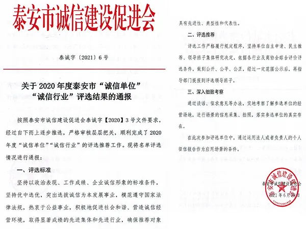 2021年9月9日上午,2020年度泰安市首屆“誠(chéng)信單位”頒獎(jiǎng)儀式在泰安希岸酒店舉行。