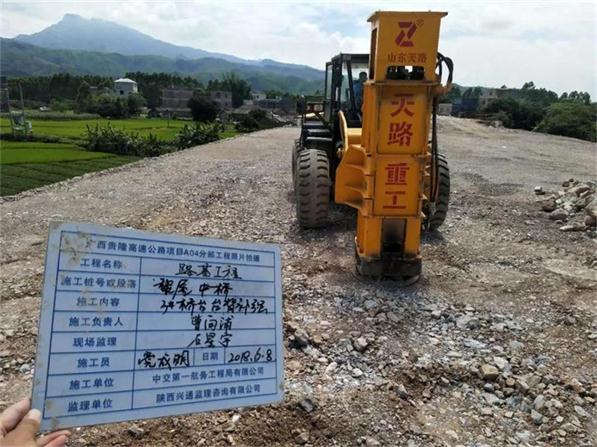 貴隆高速公路施工現(xiàn)場,隨著一陣 “噠噠噠噠”脈沖式的液壓聲響,地下便呈現(xiàn)出了數(shù)個圓餅狀的凹坑,這是貴隆項目總承包部的液壓夯實機正在施工作業(yè)。在試用完**臺高速液壓夯實機后,天路重工憑借出色的表現(xiàn)獲得全線認可,截至目前,貴隆高速全線共采用四臺天路重工高速液壓夯實機。