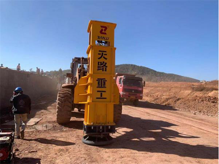 第三,夯板的設(shè)計(jì)行程更大,可避免機(jī)體與夯板的碰撞,確保裝載機(jī)與夯實(shí)機(jī)夯實(shí)時(shí)的隨動,較大限度的發(fā)揮了夯實(shí)機(jī)對地層的影響深度。